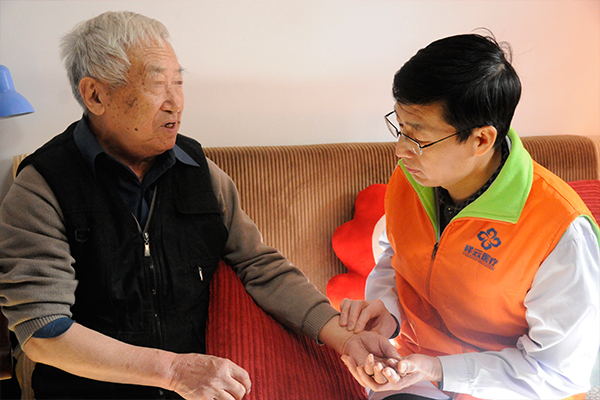 11月23日感恩節(jié)當天上午,北京京城皮膚醫(yī)院胡聰明院長帶領(lǐng)醫(yī)院志愿者一行來到北沙灘社區(qū),在北沙灘社區(qū)張巖主任的陪同下,走訪慰問了北沙灘、農(nóng)機院等10余戶空巢老人家庭,每到一戶,院長和社區(qū)志愿者們都仔細詢問老人們家庭生活情況和健康狀況,與老人拉起家常,并為他們帶去了大米、食用油等慰問品,同時醫(yī)院內(nèi)科副主任醫(yī)師王小平主任和中醫(yī)皮膚科副主任醫(yī)師王連祥分別為空巢老人們一一問診,檢查身體,并給出了健康指導(dǎo)。