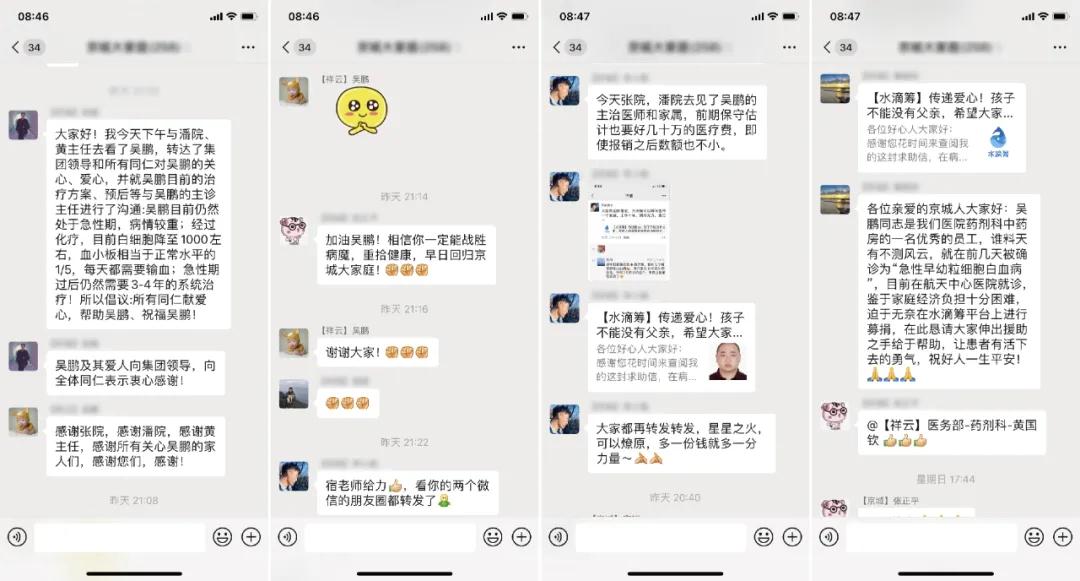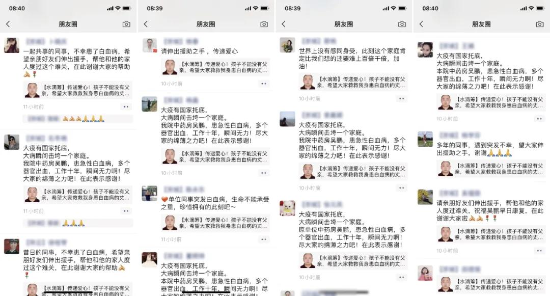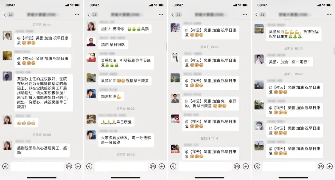 得知此事后,集團(tuán)和醫(yī)院領(lǐng)導(dǎo)高度重視,立即組織工會(huì)發(fā)動(dòng)捐款。我院員工積極踴躍,紛紛伸出捐助之手,為吳鵬籌集治療費(fèi)用。全體員工也充分利用微信公眾號(hào)等互聯(lián)網(wǎng)平臺(tái)在朋友群、戰(zhàn)友群、同學(xué)群、親情群發(fā)出愛心擴(kuò)散,營造了一傳十,十傳百,百傳千千萬的愛心接力。另外,通過網(wǎng)絡(luò)平臺(tái)等多種形式向社會(huì)發(fā)起募捐等一系列援助,所得愛心款項(xiàng)全部交給吳鵬本人進(jìn)行治療費(fèi)用使用。