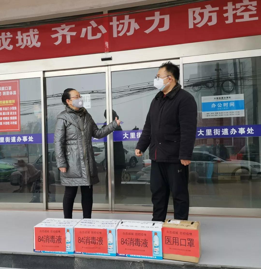 大里街道黨工委組織部曹部長出席捐贈儀式,他衷心感謝京城皮膚醫(yī)院對大里街道黨工委的關(guān)心和支持,“這些口罩、84消毒液真是解決了我們當前疫情防護工作的燃眉之急,你們真是雪中送炭!謝謝你們對街道工作的無私支援!”