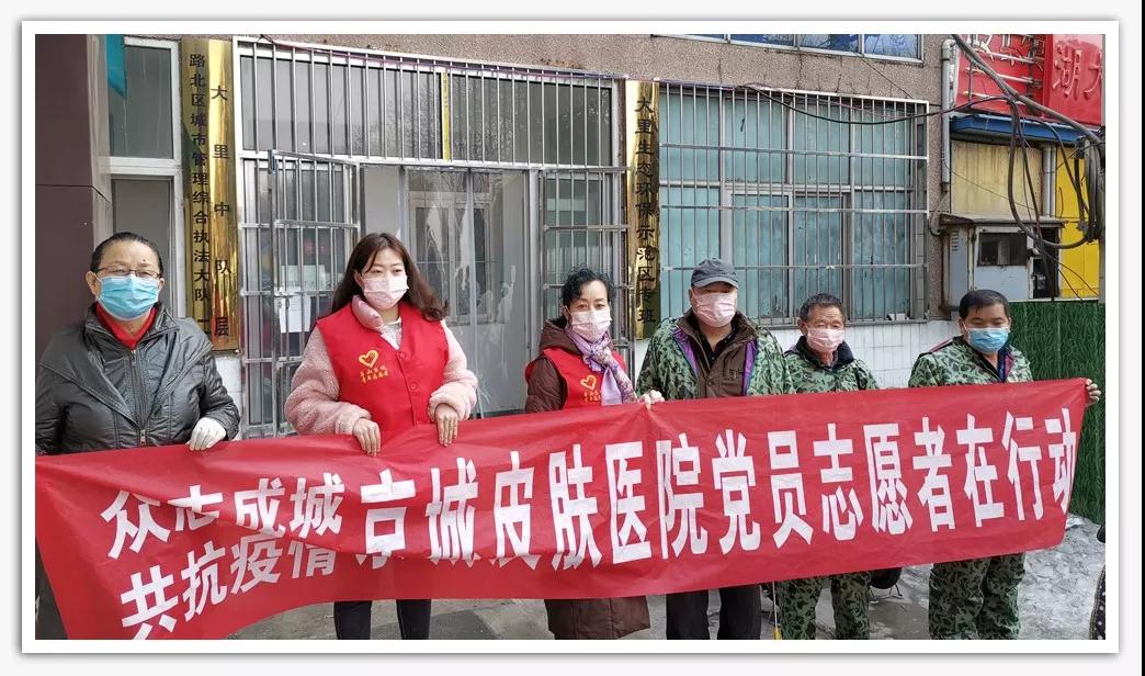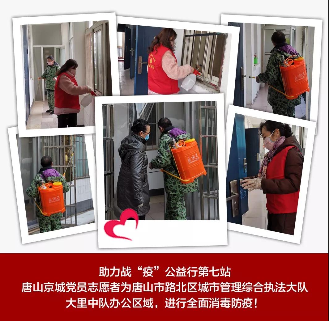 2月19日下午3點30分,唐山京城皮膚醫(yī)院黨支部龔蘭珍書記帶領(lǐng)黨員志愿者,來到唐山市城市管理綜合執(zhí)法大里中隊,為他們的辦公室、樓道、門把手等辦公及公共區(qū)域進行全面徹底的噴殺消毒,看著志愿者們一絲不茍消毒的樣子,城管中隊的警官們紛紛伸出大拇指點贊!