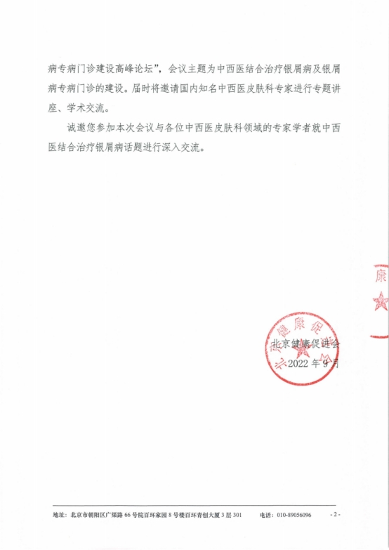 北京京城皮膚醫(yī)院將于9月30日舉辦京城銀屑病專病門診建設(shè)高峰論壇