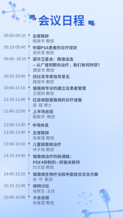 會(huì)議主席北京京城皮膚醫(yī)院業(yè)務(wù)院長(zhǎng)殷致宇教授、北京大學(xué)第三醫(yī)院張春雷教授分別主持了論壇的上午場(chǎng)和下午場(chǎng)。來(lái)自皮膚醫(yī)學(xué)領(lǐng)域的十多位專(zhuān)家學(xué)者暢所欲言、各抒己見(jiàn),交流關(guān)于銀屑病診療的新經(jīng)驗(yàn)、新辦法、新方案,共同探討如何推進(jìn)銀屑病專(zhuān)病門(mén)診建設(shè)、為患者提供全方位的健康管理解決方案。